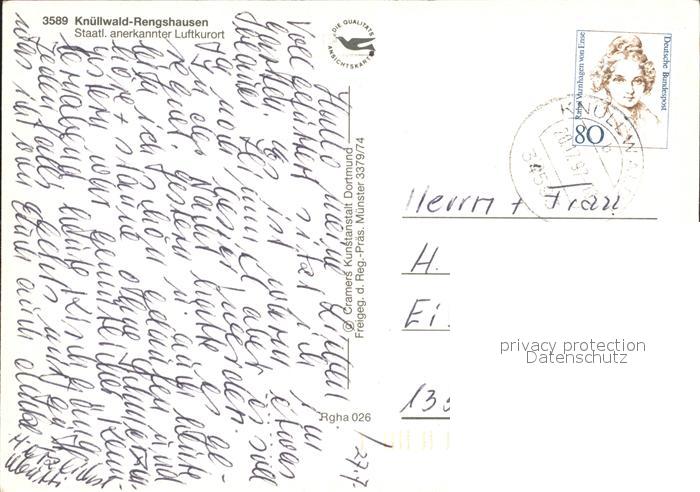 72129962 alte Postkarte Rengshausen Hessen Fliegeraufnahme Knuellwald postalisch gelaufen Erhaltung siehe scans KatCode: 11110006634011