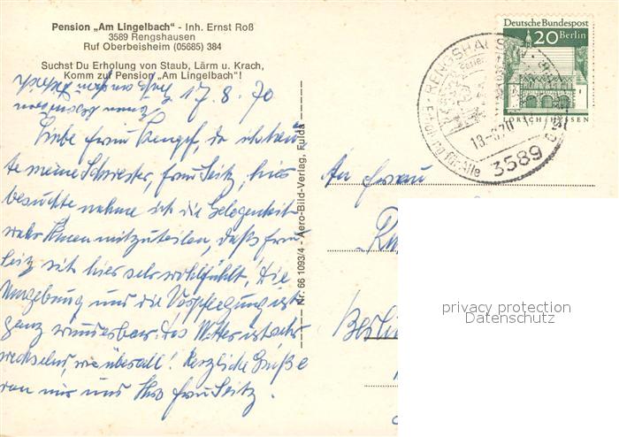 73717234 alte Postkarte Rengshausen Hessen Pension Am Lingelbach Liegewiese Terrasse Pferdekutsche postalisch gelaufen Erhaltung siehe scans [WerneD78] KatCode: 11110006634011