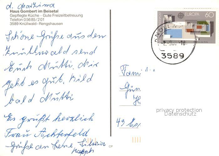 73204369 alte Postkarte Rengshausen Knuellwald Haus Gombert im Beisetal postalisch gelaufen Erhaltung siehe scans [FriedD77] KatCode: 11110006634011