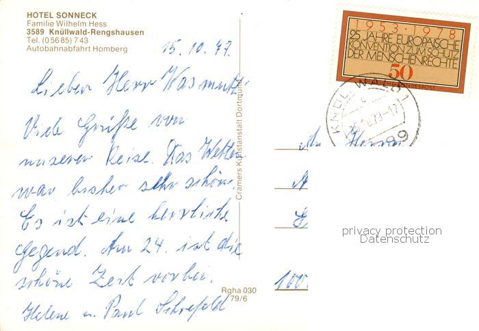 73840631 alte Postkarte Rengshausen Knuellwald Hotel Restaurant Sonneck postalisch gelaufen Erhaltung siehe scans [FriedD77] KatCode: 11110006634011