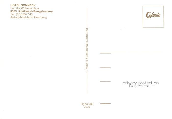 73866739 Rengshausen Knuellwald Hotel Sonneck Gastraeume postalisch nicht gelaufen Erhaltung siehe scans [WerneD78] KatCode: 11110006634011