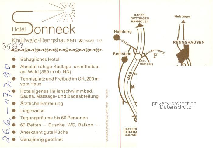73866745 Rengshausen Knuellwald Hotel Sonnecke Gastraeume postalisch nicht gelaufen Erhaltung siehe scans [WerneD78] KatCode: 11110006634011