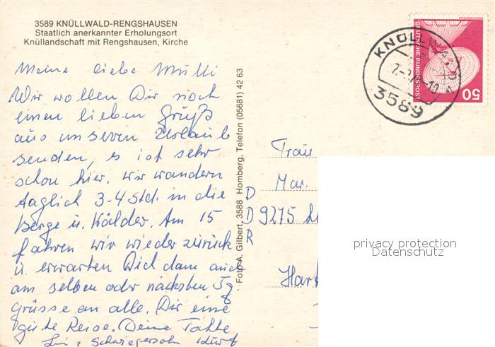 73643028 alte Postkarte Rengshausen Knuellwald Panorama Ferienort postalisch gelaufen Erhaltung siehe scans [FriedD77] KatCode: 11110006634011