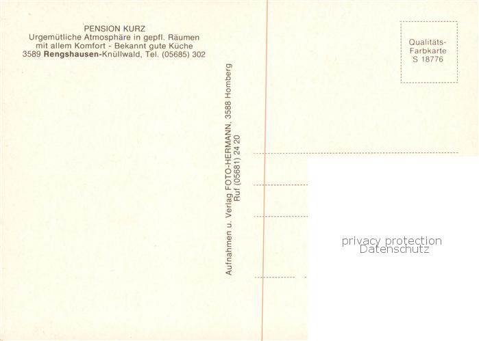 73866748 Rengshausen Knuellwald Pension Kurz Gaststube Terrasse Zimmer postalisch nicht gelaufen Erhaltung siehe scans [WerneD78] KatCode: 11110006634011