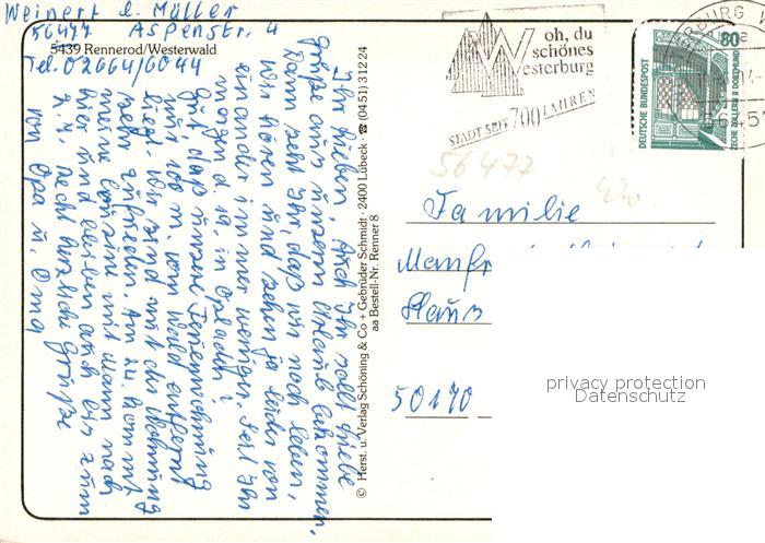 73672724 alte Postkarte Rennerod Kirche Brunnen Hotel Mauerbrunnen Ortspartien postalisch gelaufen Erhaltung siehe scans [WerneD78] KatCode: 11110007143286