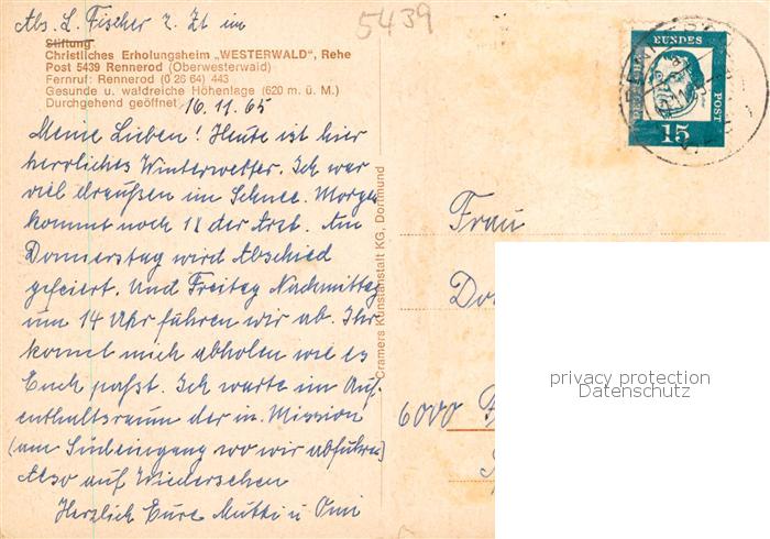 73870124 alte Postkarte Rennerod Stiftung Christl Erholungsheim Westerwald postalisch gelaufen Erhaltung siehe scans [WerneD78] KatCode: 11110007143286