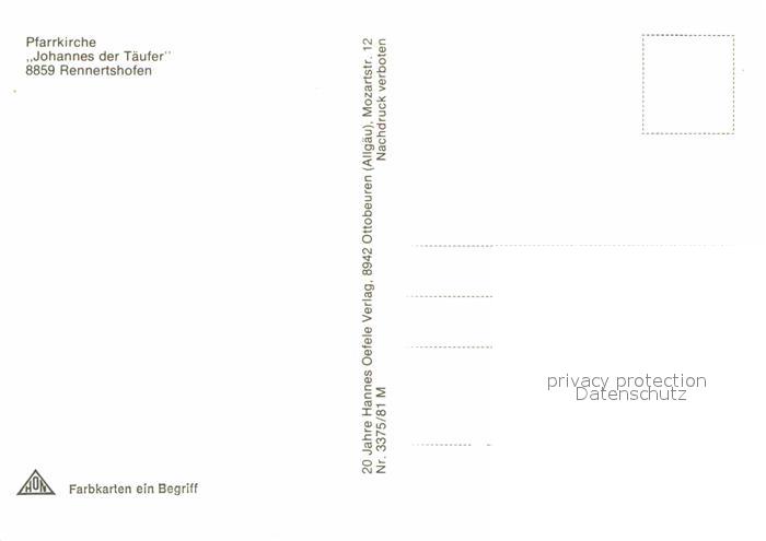 72755518 Rennertshofen Oberbayern Pfarrkirche Johannes der Taeufer postalisch nicht gelaufen Erhaltung siehe scans [WerneD78] KatCode: 11110009185153
