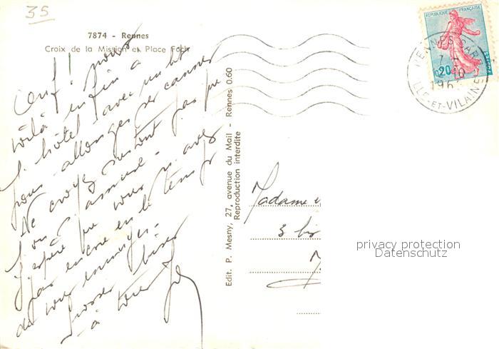 13593942 Rennes Ille-et-Vilaine Croix de la Mission et Place Foch postalisch gelaufen Erhaltung siehe scans [WerneD78] carte postale Wern Katcode 11170035335238