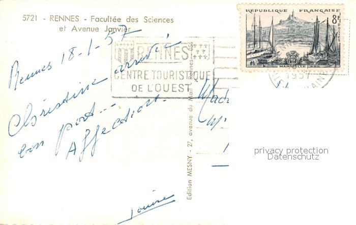 13594352 Rennes Ille-et-Vilaine Facultée des Sciences et Avenue Janvier postalisch gelaufen Erhaltung siehe scans [FriedD77] carte postale Frie Katcode 11170035335238