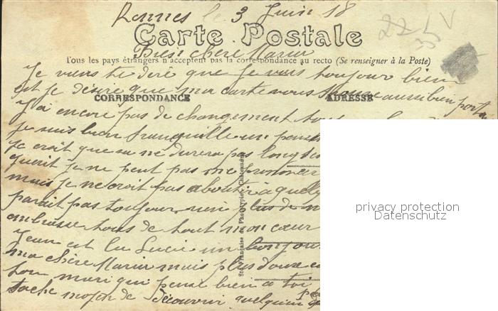 12202083 Rennes Ille-et-Vilaine La Rue le Graverend postalisch nicht gelaufen Erhaltung siehe scans KatCode: 11170035335238