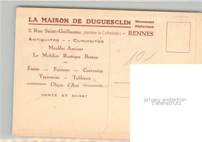 13136365 Rennes Ille-et-Vilaine Maison de Duguesclin postalisch nicht gelaufen Erhaltung siehe scans [KathaD81] KatCode: 11170035335238