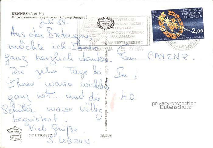 12454922 carte postale Rennes Ille-et-Vilaine Maisons anciennes Place du Champ Jacquet Altes Fachwerk postalisch gelaufen Erhaltung siehe scans KatCode: 11170035335238