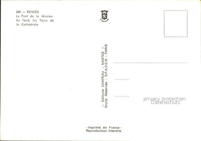 12459003 Rennes Ille-et-Vilaine Pont de la Mission Cathedrale postalisch nicht gelaufen Erhaltung siehe scans KatCode: 11170035335238