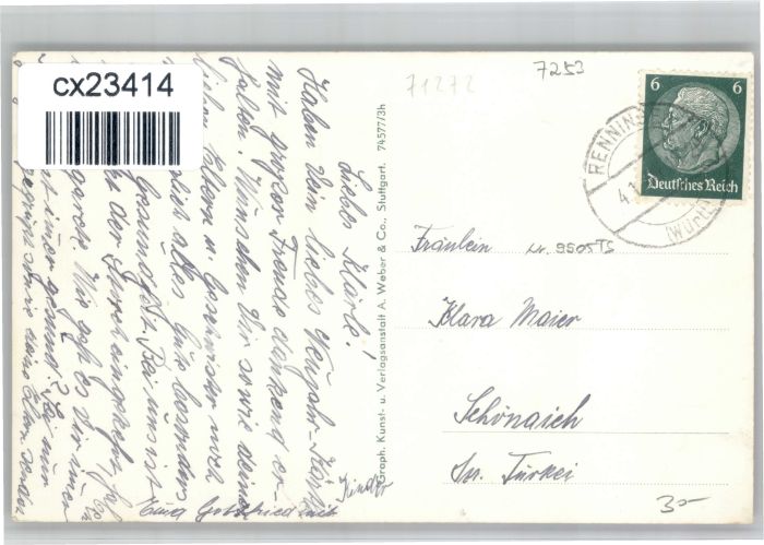 30752146 alte Postkarte Renningen Hauptstrasse postalisch gelaufen KatCode: 11110008115041