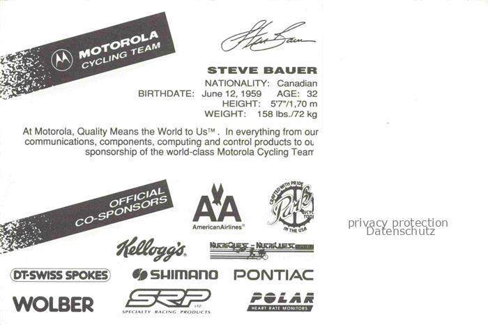 74136564 Rennsport Fahrrad Bicycle Bicyclette Steve Bauer Motorola Canada USA postalisch nicht gelaufen Erhaltung siehe scans [SanaeD93] KatCode: 22580000000200