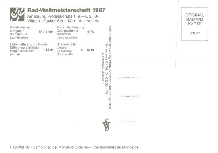74027914 Rennsport Fahrrad Bicycle Bicyclette Villach Faaker See Kaernten Austria postalisch nicht gelaufen Erhaltung siehe scans [SanaeD93] KatCode: 22580000000200
