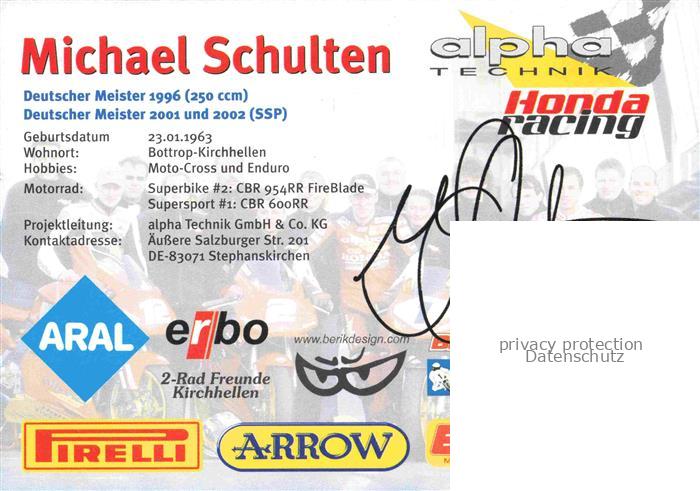 74136544 Rennsport Motorrad Motor Bike Motocycla alpha Technik Honda Michael Schulten postalisch nicht gelaufen Erhaltung siehe scans [SanaeD93] KatCode: 22580000000100