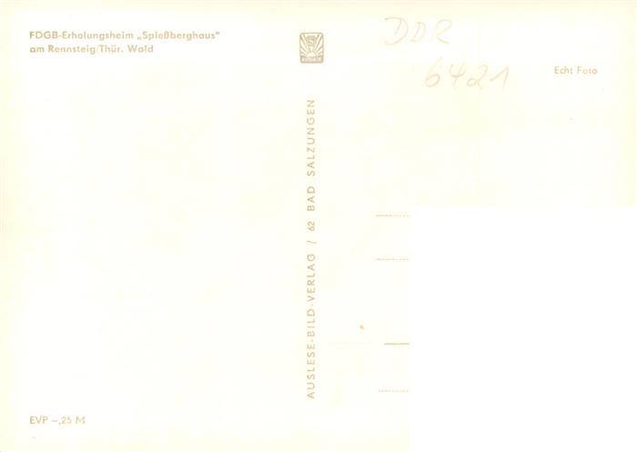 73875365 Rennsteig FDGB Erholungsheim Spiessberghaus postalisch nicht gelaufen Erhaltung siehe scans [FriedD77] KatCode: 11110016072013