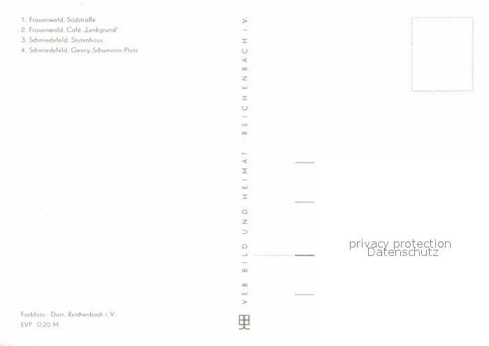 72919427 Rennsteig Frauenwald Suedstrasse Cafe Lenkgrund Schmiedefeld Stutenhaus Georg Schumann Platz postalisch nicht gelaufen Erhaltung siehe scans [FriedD77] KatCode: 11110016072013