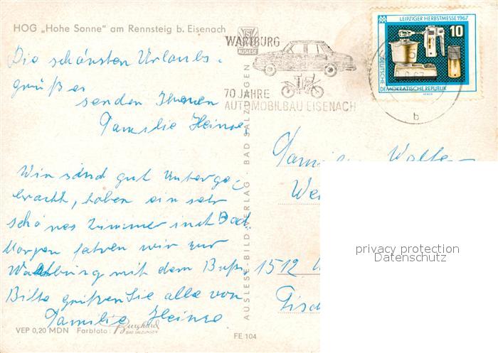 73097952 alte Postkarte Rennsteig HOG Hohe Sonne postalisch gelaufen Erhaltung siehe scans [WerneD78] KatCode: 11110016072013
