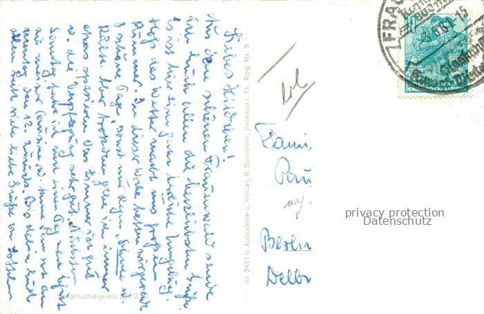 74153965 alte Postkarte Rennsteig Panorama Frauenwald Denkmal Hirschstatue postalisch gelaufen Erhaltung siehe scans [FriedD77] KatCode: 11110016072013