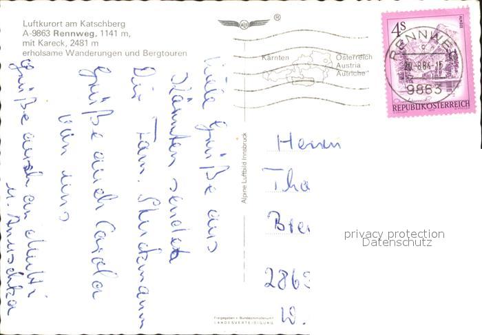 71909746 alte Postkarte Rennweg Katschberg Kareck St Georgen postalisch gelaufen Erhaltung siehe scans KatCode: 11390212020632