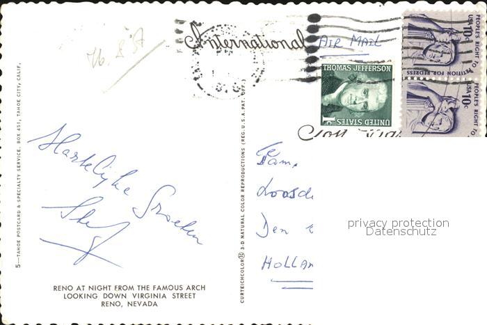 72463222 old postcard Reno Nevada at Night Down Virginia Street postalisch gelaufen Erhaltung siehe scans KatCode: 14140300000000