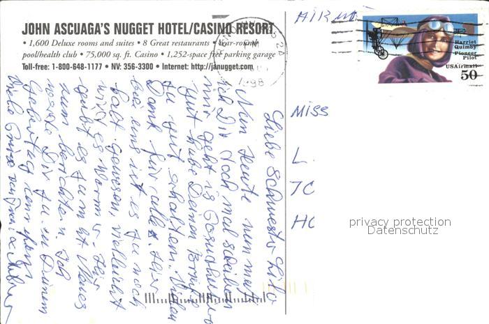 72329091 old postcard Reno Nevada John Ascuanagas Nugget Hotel Casino postalisch gelaufen Erhaltung siehe scans KatCode: 14140300000000