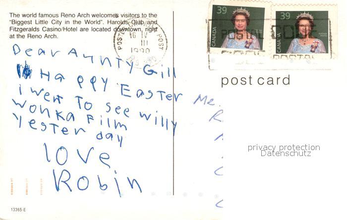 73131752 old postcard Reno Nevada Reno Arch Fitzgeralds Casino Hotel at night postalisch gelaufen Erhaltung siehe scans [FriedD77] KatCode: 14140300000000