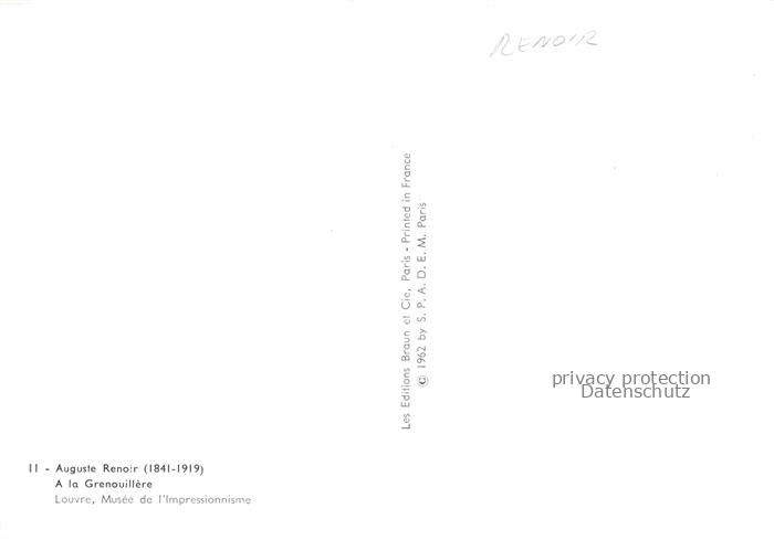 74092255 RENOIR Pierre-Auguste (1841-1919) Kuenstlerkarte a la Grenouillere Louvre Musee Paris postalisch nicht gelaufen Reprokarte Erhaltung siehe scans [SanaeD93] KatCode: 22240000003200
