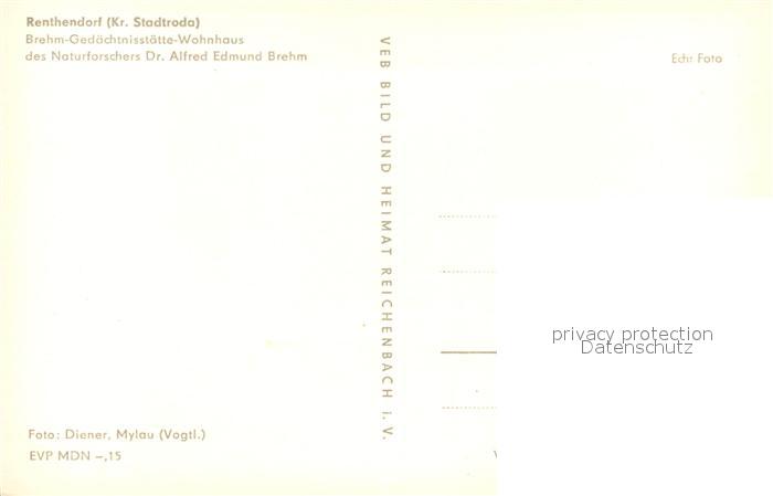 73322425 Renthendorf Brehm-Gedaechtnisstaette Wohnhaus des Naturforschers postalisch nicht gelaufen Erhaltung siehe scans [LiesaD40] KatCode: 11110016074077