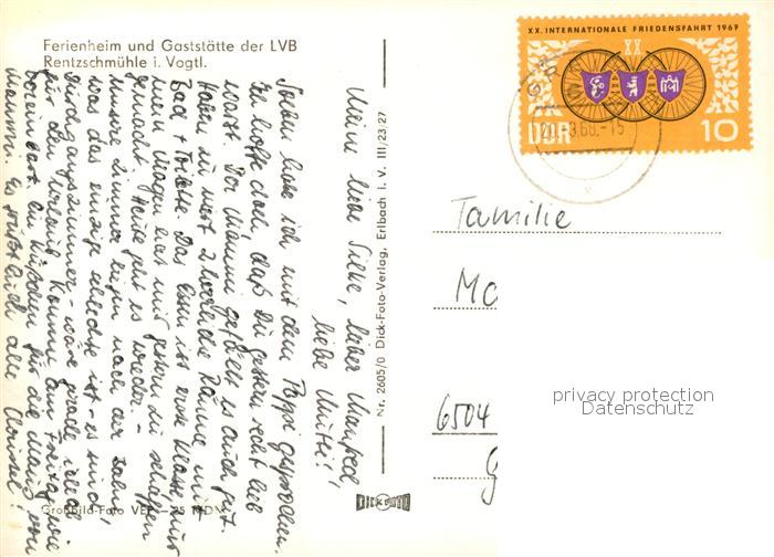 73567169 alte Postkarte Rentzschmuehle Vogtland Thueringen Ferienheim und Gaststaette der LVB Eisenbahn postalisch gelaufen Erhaltung siehe scans [FriedD77] KatCode: 11110016076091