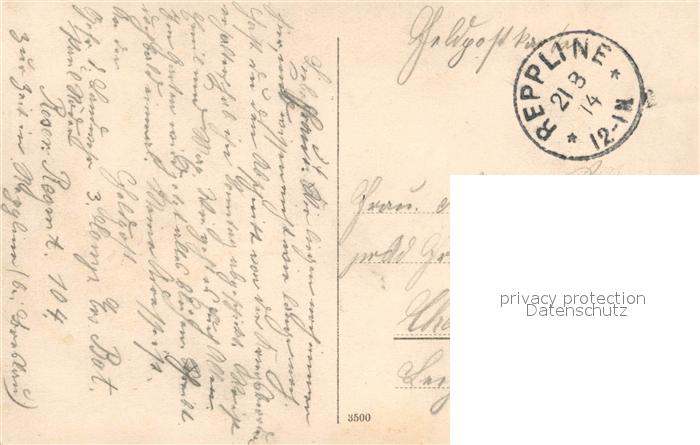 33547676 old postcard Reppline Rzeplin Filzfabrik Schloss Schule Kolonialwarenhandlung postalisch gelaufen Feldpostkarte Erhaltung siehe scans [KathaD81] KatCode: 11410