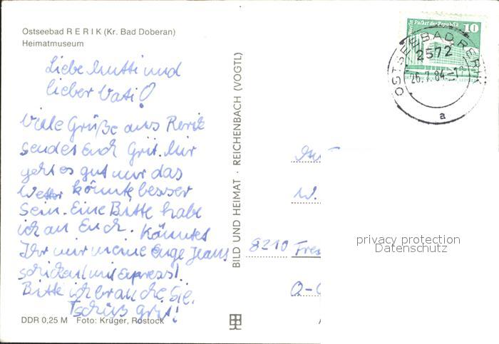 72327744 alte Postkarte Rerik Ostseebad Heimatmuseum Schiffsmodelle postalisch gelaufen Erhaltung siehe scans KatCode: 11110013051062