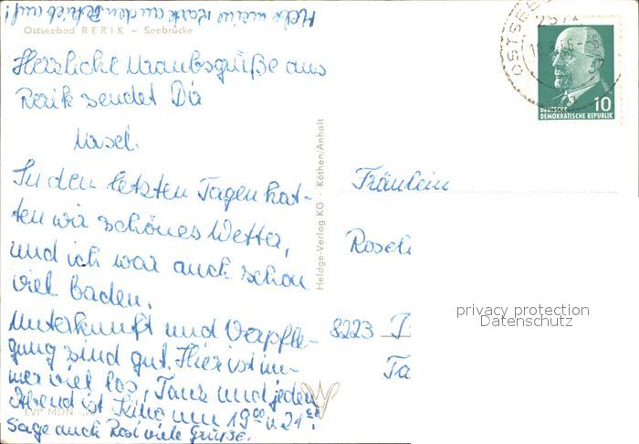 71941972 alte Postkarte Rerik Ostseebad Seebruecke postalisch gelaufen Erhaltung siehe scans KatCode: 11110013051062