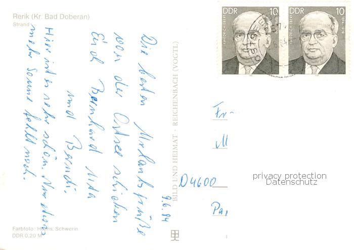 73813998 alte Postkarte Rerik Ostseebad Strand postalisch gelaufen Erhaltung siehe scans [FriedD77] KatCode: 11110013051062