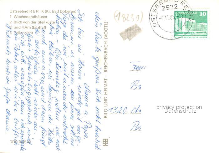 73139583 alte Postkarte Rerik Ostseebad Wochenendhaeuser Steilkueste Salzhaff Strand postalisch gelaufen Erhaltung siehe scans [FriedD77] KatCode: 11110013051062