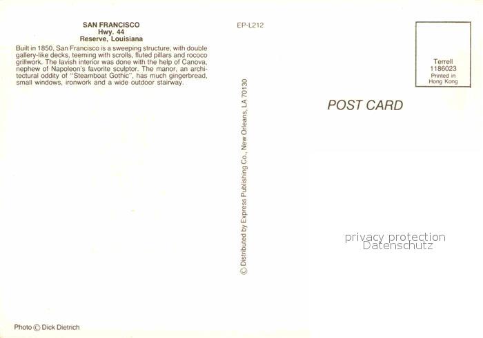 72708451 Reserve Louisiana San Francisco Plantation postalisch nicht gelaufen Erhaltung siehe scans [AndreD76] KatCode: 14140200000000