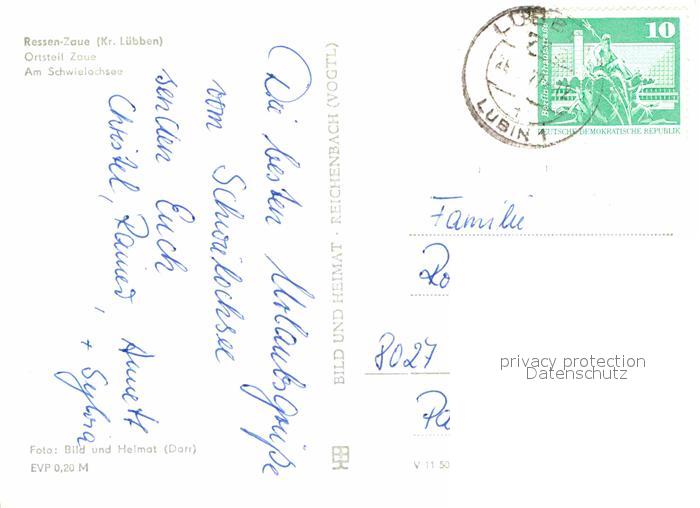 72642666 alte Postkarte Ressen-Zaue Am Schwielochsee postalisch gelaufen Erhaltung siehe scans [WerneD78] KatCode: 11110012061450