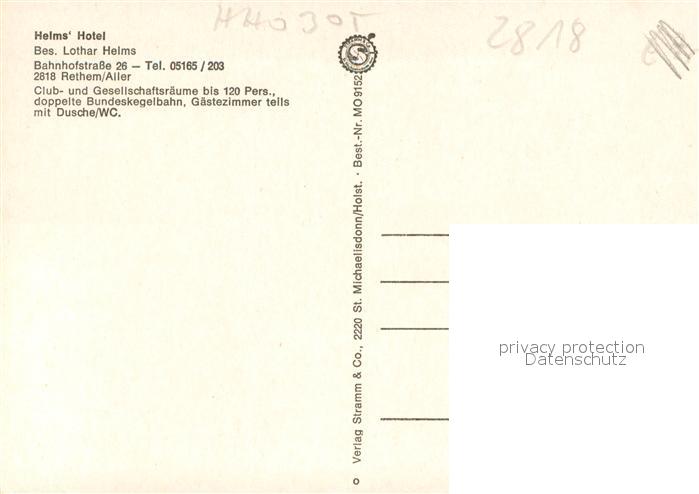 73724327 Rethem Aller Helms Hotel Innenansicht postalisch nicht gelaufen Erhaltung siehe scans [LiesaD40] KatCode: 11110003358018