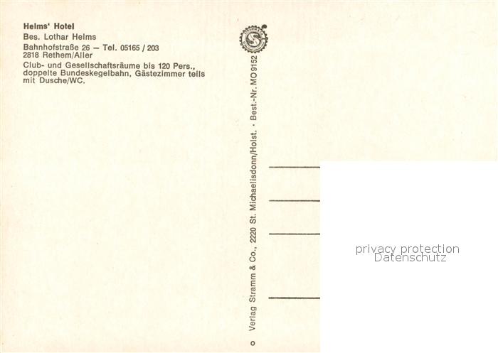 73614945 Rethem Aller Helms Hotel Kegelbahn Gaststube Bar postalisch nicht gelaufen Erhaltung siehe scans [WerneD78] KatCode: 11110003358018