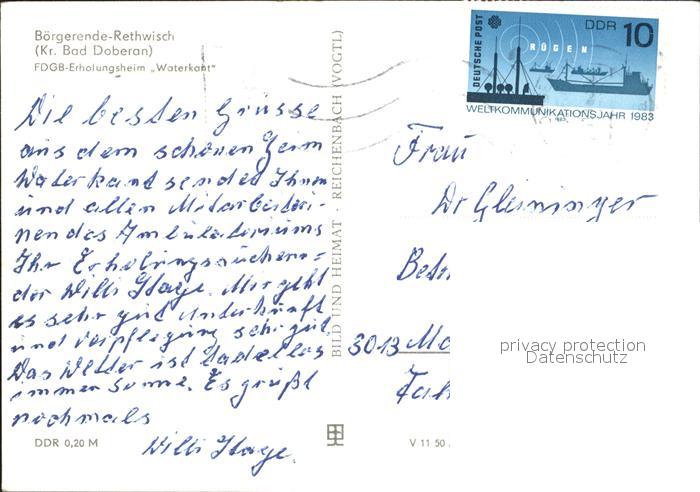 72074598 alte Postkarte Rethwisch Boergerende-Rethwisch FDGB Erholungsheim Waterkant postalisch gelaufen Erhaltung siehe scans KatCode: 11110013051013
