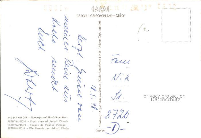 old postcard Rethymno Kreta Fassade der Arkadi Kirche postalisch gelaufen Erhaltung siehe scans