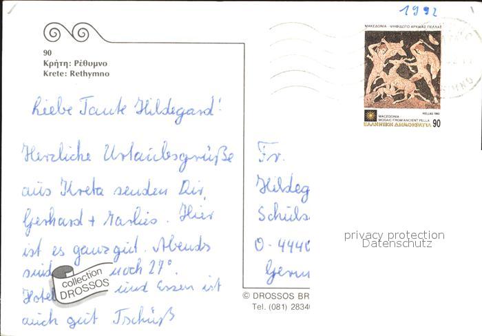 old postcard Rethymno Kreta Hafen Huegelhaeuser Promenade Panorama postalisch gelaufen Erhaltung siehe scans [WerneD78 kt116box]