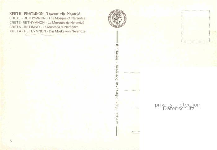 Rethymnon Kreta Moschee von Nerandze postalisch nicht gelaufen Erhaltung siehe scans [FriedD77]