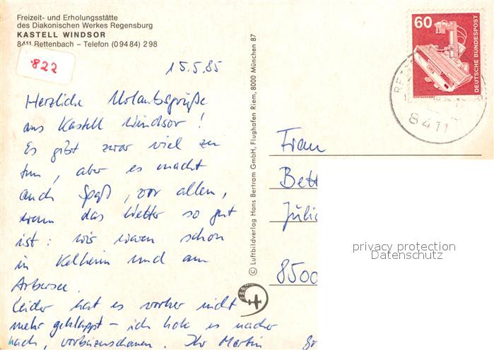 73158682 alte Postkarte Rettenbach Cham Kastell Windsor Fliegeraufnahme postalisch gelaufen Erhaltung siehe scans [WerneD78] KatCode: 11110009372150