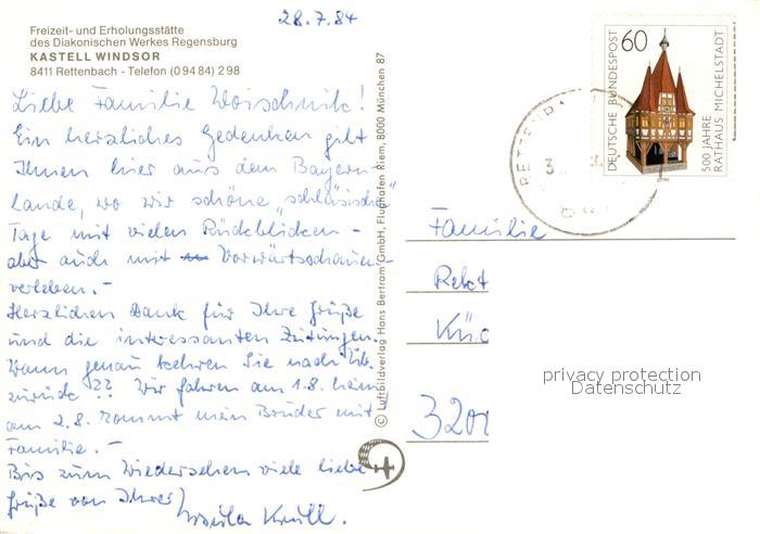 72946775 alte Postkarte Rettenbach Cham Kastell Windsor postalisch gelaufen Erhaltung siehe scans [KathaD81] KatCode: 11110009372150