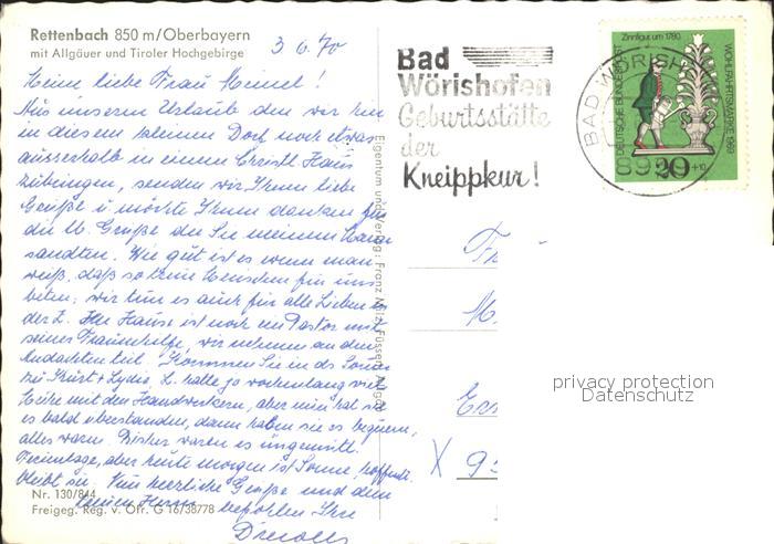 72156007 alte Postkarte Rettenbach Oberbayern Allgaeuer Alpen Tiroler Hochgebirge Fliegeraufnahme postalisch gelaufen Erhaltung siehe scans KatCode: 11110009778168