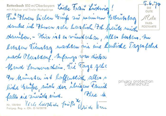 73724766 Rettenbach Oberbayern Fliegeraufnahme mit Allgaeuer und Tiroler Hochgebirge postalisch nicht gelaufen Erhaltung siehe scans [WerneD78] KatCode: 11110009778168