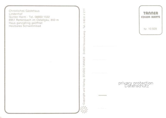 72981617 Rettenbach Oberbayern Gaestehaus Lindenhof postalisch nicht gelaufen Erhaltung siehe scans [LiesaD40] KatCode: 11110009778168
